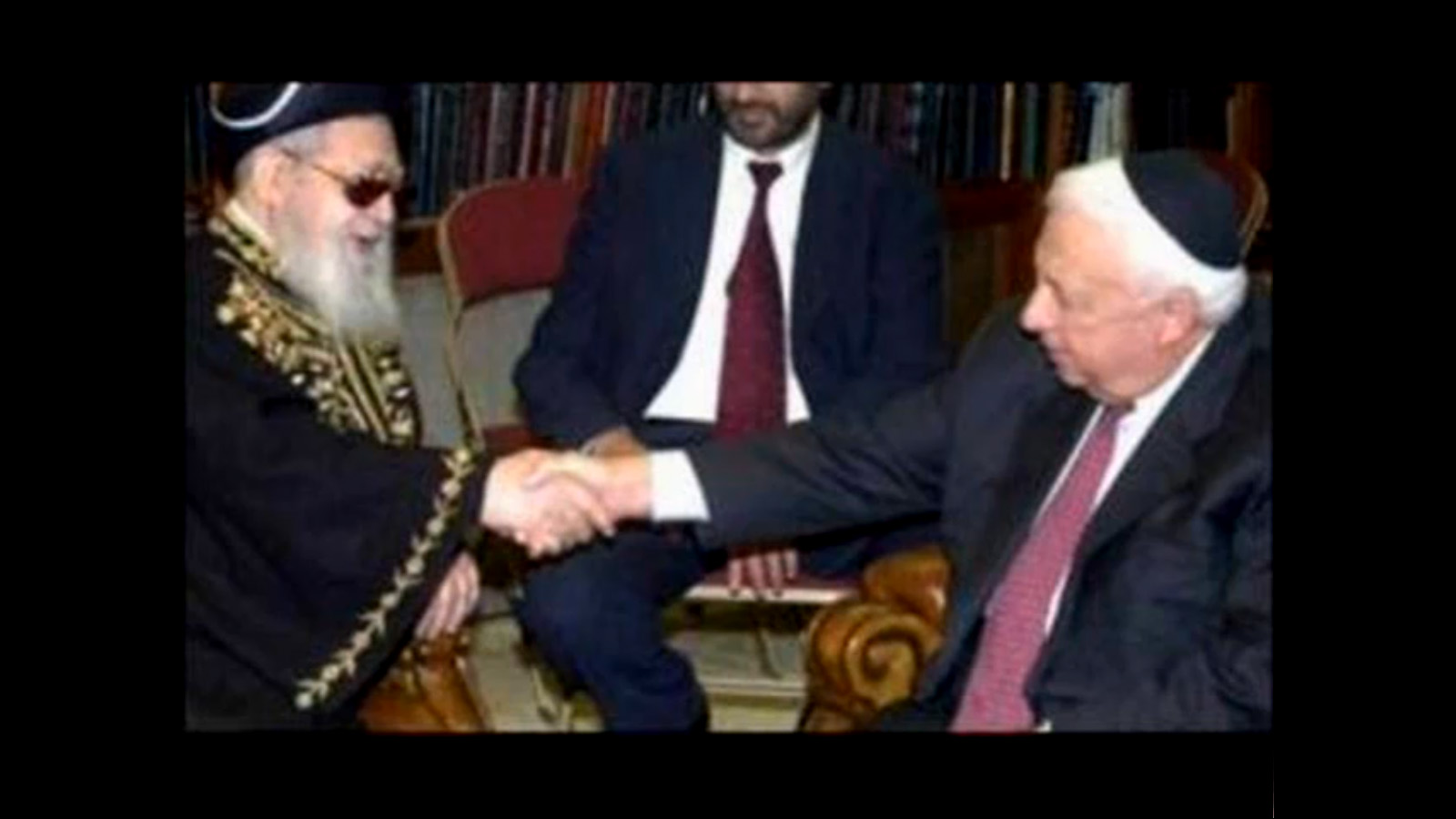 Former Chief Rabbi of “Israel” Rabbi Ovadia Yosef with Sharon