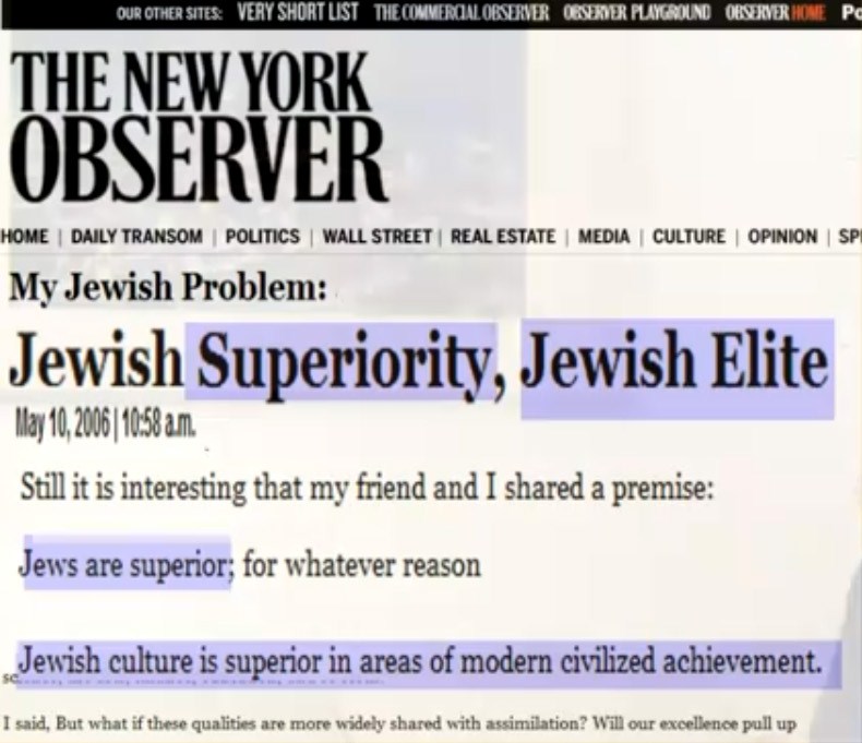 Yet, the Anti-Defamation League condemns as “antisemitic” any writings about “Jewish Supremacism” and labels any person who utters the words as “anti-Semite”.