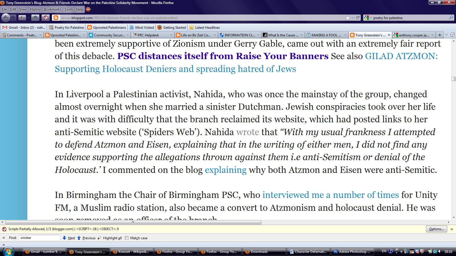 Here is only one example of the appalling consequences of Sam S. and associates’ effort to defame and smear my character; hence discredit my research, evident in the blog of his friend and comrade Tony Greenstein: