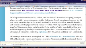 “In Liverpool a Palestinian activist, Nahida, who was once the mainstay of the group, changed almost overnight when she married a sinister Dutchman. Jewish conspiracies took over her life and it was with difficulty that the branch reclaimed its website, which had posted links to her anti-Semitic website (‘Spiders Web’).”