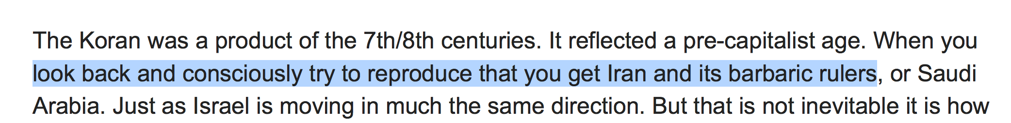 “the Quoran also have passages that are chauvinist and today, in the context of state policy, would undoubtedly be deemed racist”~~~ Tony Greenstein